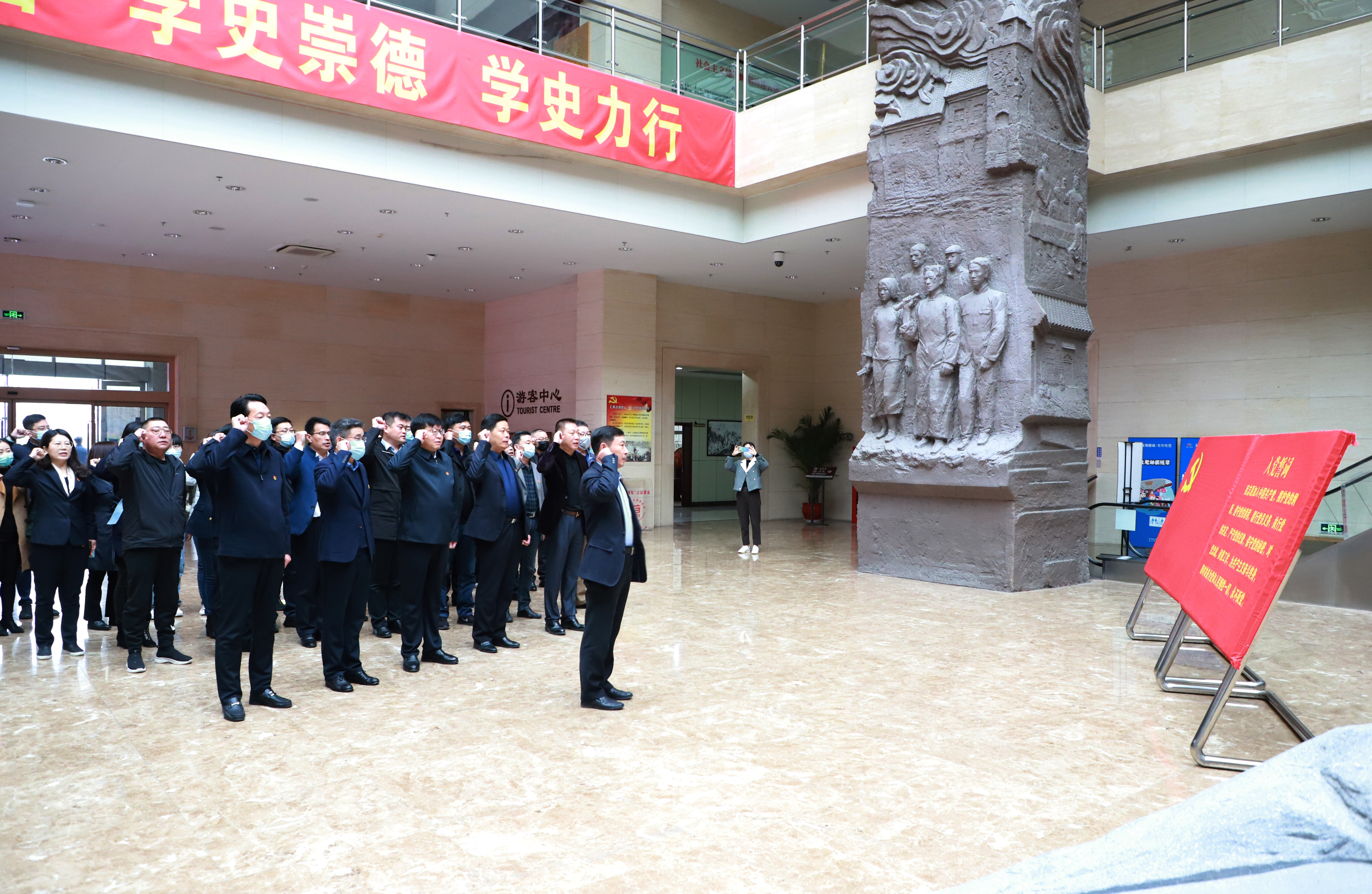 冒着淅沥小雨,大家怀着对革命烈士的崇高敬意,走进市革命纪念馆,面对鲜红党旗,庄严举起右手,重温入党誓词。随后,在讲解员的带领下,通过倾听讲解、观看图片影像和珍贵实物,深刻了解连云港宏伟壮丽的革命斗争史,回顾革命先烈艰苦卓绝的奋斗历程,感悟革命先烈同仇敌忾浴血奋战的英雄气慨,深切缅怀革命先烈不朽的丰功伟绩。