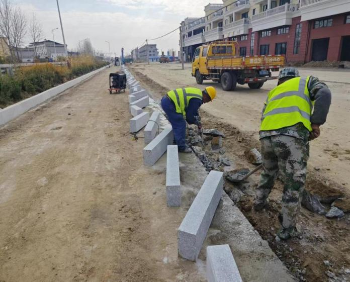 项目部全体职工积极响应公司推进“大干四季度,冲刺保全年目标”,严格贯彻执行有关安全生产方针、政策及法规,不断完善安全管理体系,合理安排施工方案。平行交叉施工,优化施工工序,紧抓施工施工效率和质量,严控原材料质量,杜绝粗制滥造。全段路缘石进场施工,雨水管埋置后山场碎石土回填,严格执行两次以上填土后再压实方案,定期测量,数据对标设计高程。翻新路段浇筑混凝土,新建路段浇筑水稳碎石,应对冬季低温制定实行高效养护方案,为沥青路面摊铺作业打强基础。