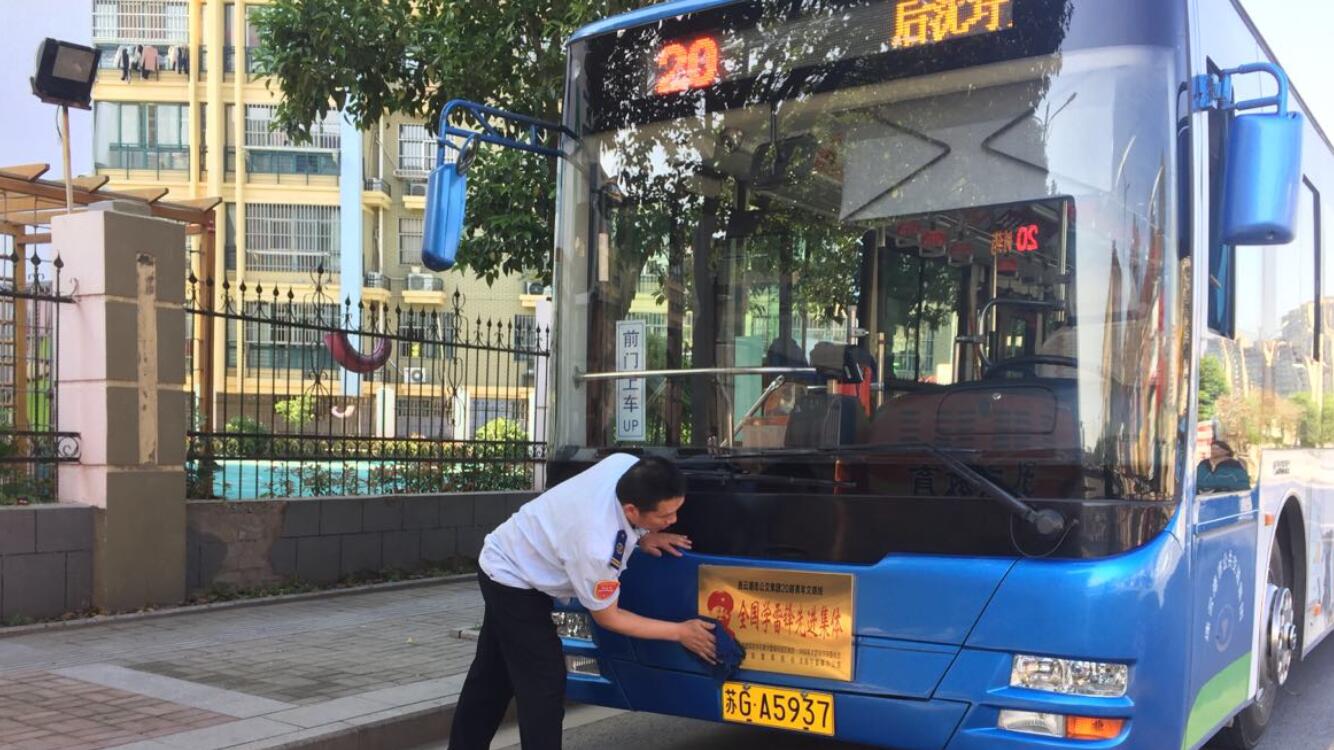 20路是青年文明线,起点为后沈圩万得园小区,终点天晴制药。线路全长26公里,贯穿城市南北,沿线设有20个站点,途经多个大型厂矿和企业,服务人群多为上班族和老年人。每天往返于这条熟悉的线路,哪个站台客流量密集,哪个路口容易堵车,哪个路段需要慢行,周卓文都了如指掌,有问必答、有需必帮。