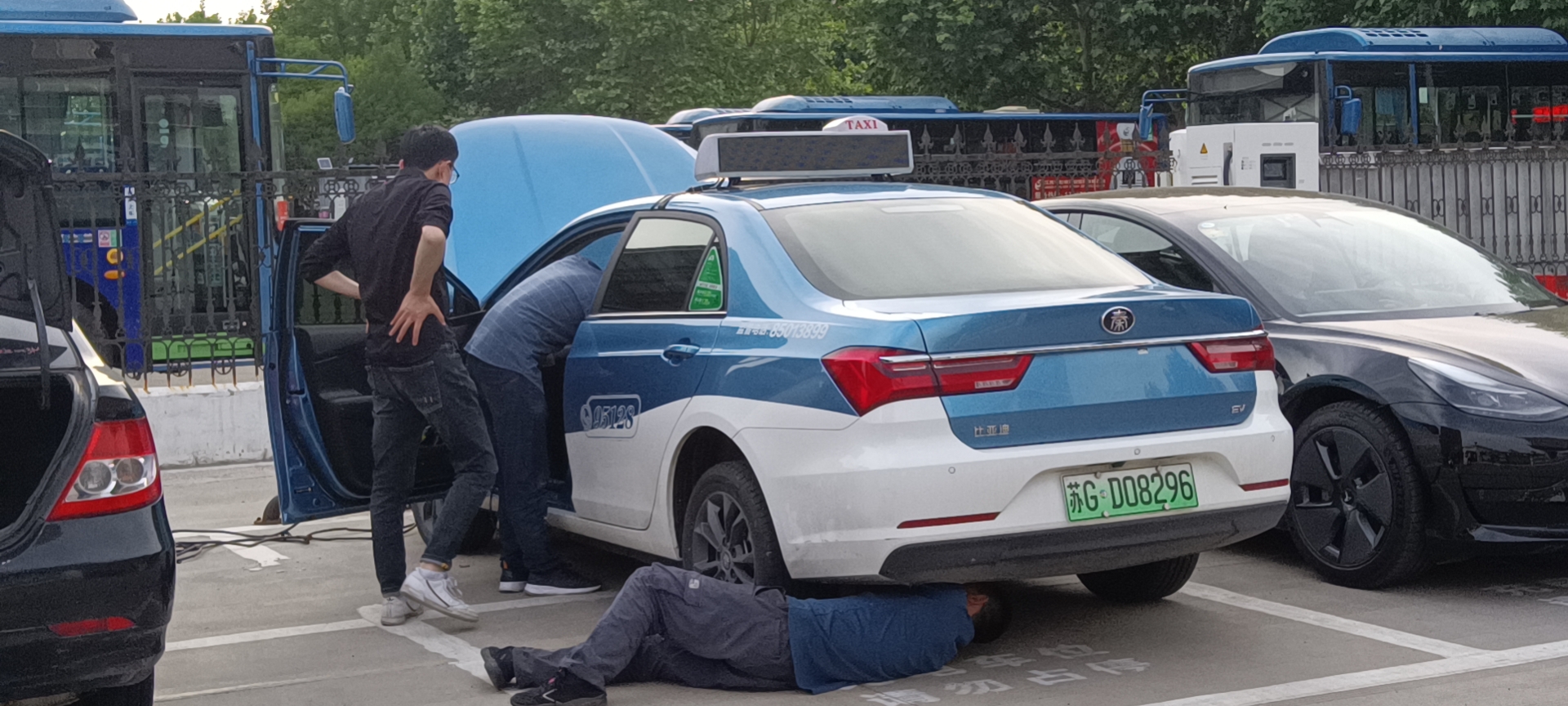 5月21日下午,一位客户打来电话,说自己的车在海州区建设东路附近的一个停车场无法启动,因用车特别着急。服务顾问接到电话后,立即通知技术经理董德俊,董德俊深知自己作为一名预备党员必须发挥先锋模范带头作用,他顾不上出差刚回来的满身疲惫,立即带领机修师傅孙爱兵前往。到达现场后,董德俊和孙爱兵立即展开车辆故障排查,经过太阳一天的炙烤,地面已经很烫,董德俊躺在滚烫的地面,钻到车下进行车辆故障排查。经过多种方式排查,最后发现该车是由于继电器不工作导致车辆无法上电,两位机修师傅利用专业工具快速修复车辆故障,为客户节约了宝贵的时间,客户十分感动,连声道谢!董德俊表示:“全心全意为人民服务是修理事业部的服务宗旨,作为一名预备党员,更应该用实际行动去践行宗旨,所有顾客遇到用车困难,都应该想法设法为其解决。”