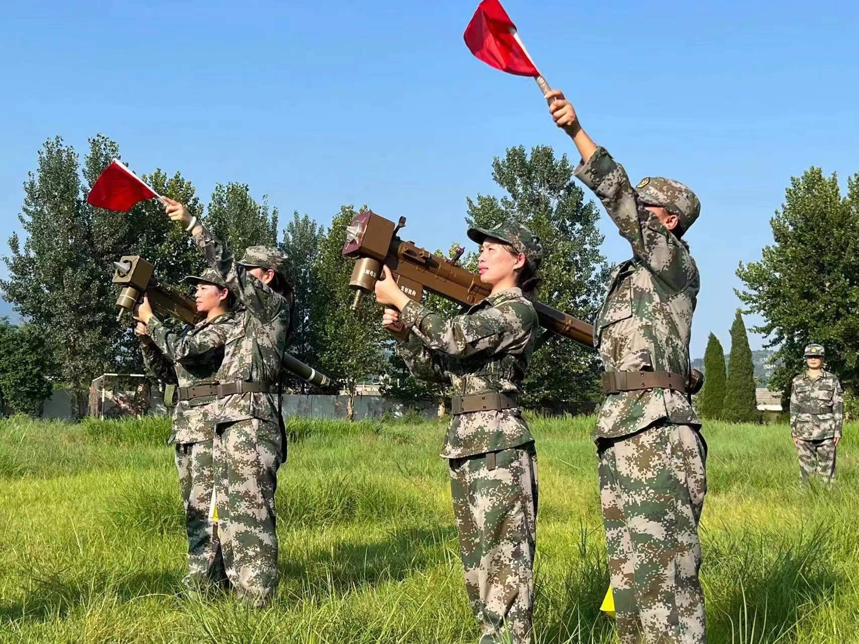 炎炎烈日、骄阳似火,训练场上的汽车公司的女子民兵统一着装,不畏酷暑,发挥不怕苦不怕累的精神。训练中,女子民兵队员们的衣服湿了又干,干了又湿,但她们没有丝毫松懈,在指导员的口令下,对每个项目进行了认真学习,训练动作一次又一次的重复中,努力将动作做得更规范、更标准,确保高标准高质量完成所有训练项目。
