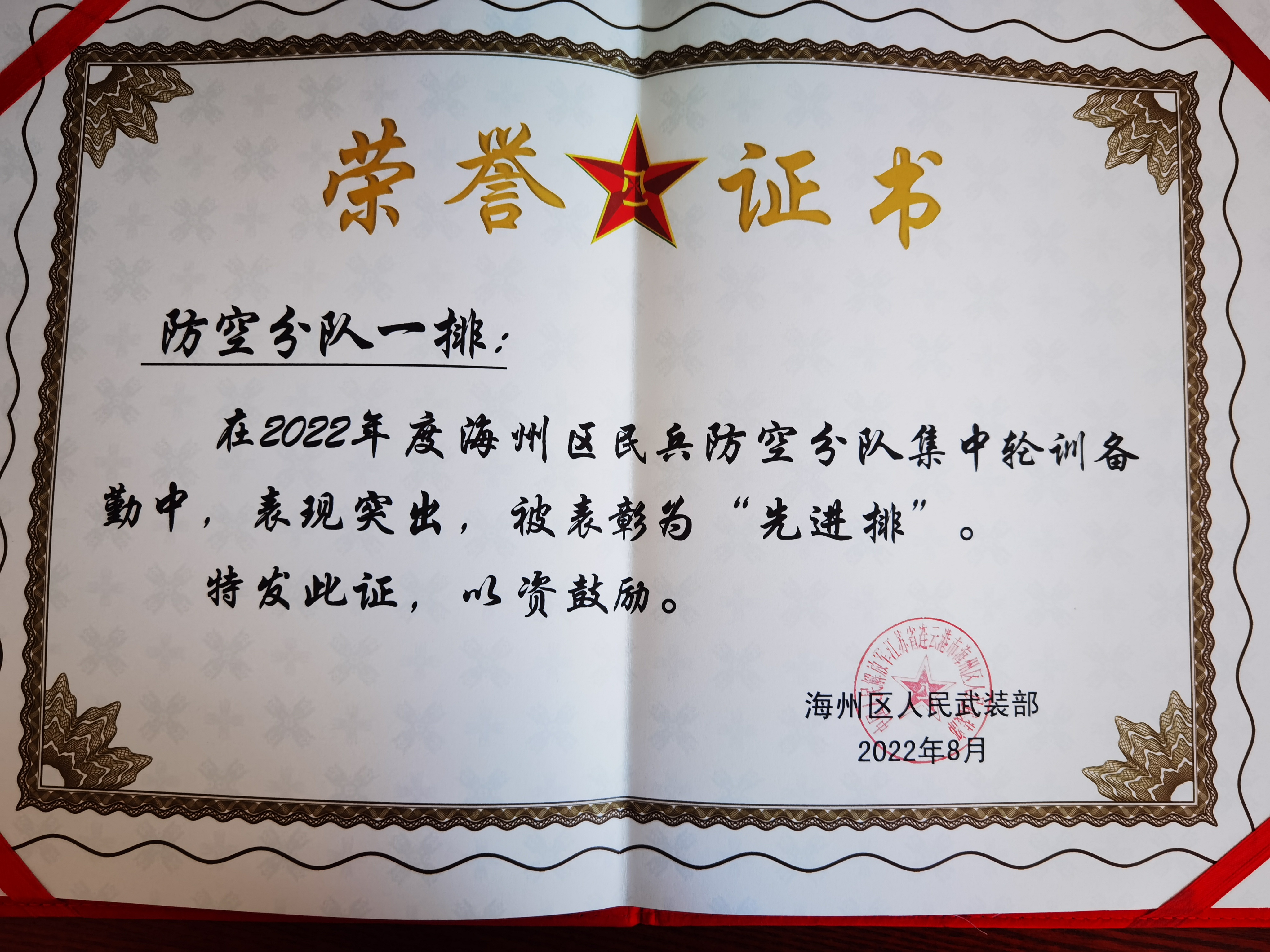 在海州区民兵防控分队集中训练工作总结表彰大会上,汽车公司李园园作为防控分队一排排长,所带的排被表彰为“先进排”,李园园、张梦玲、韩娟三人被表彰为“先进个人”。