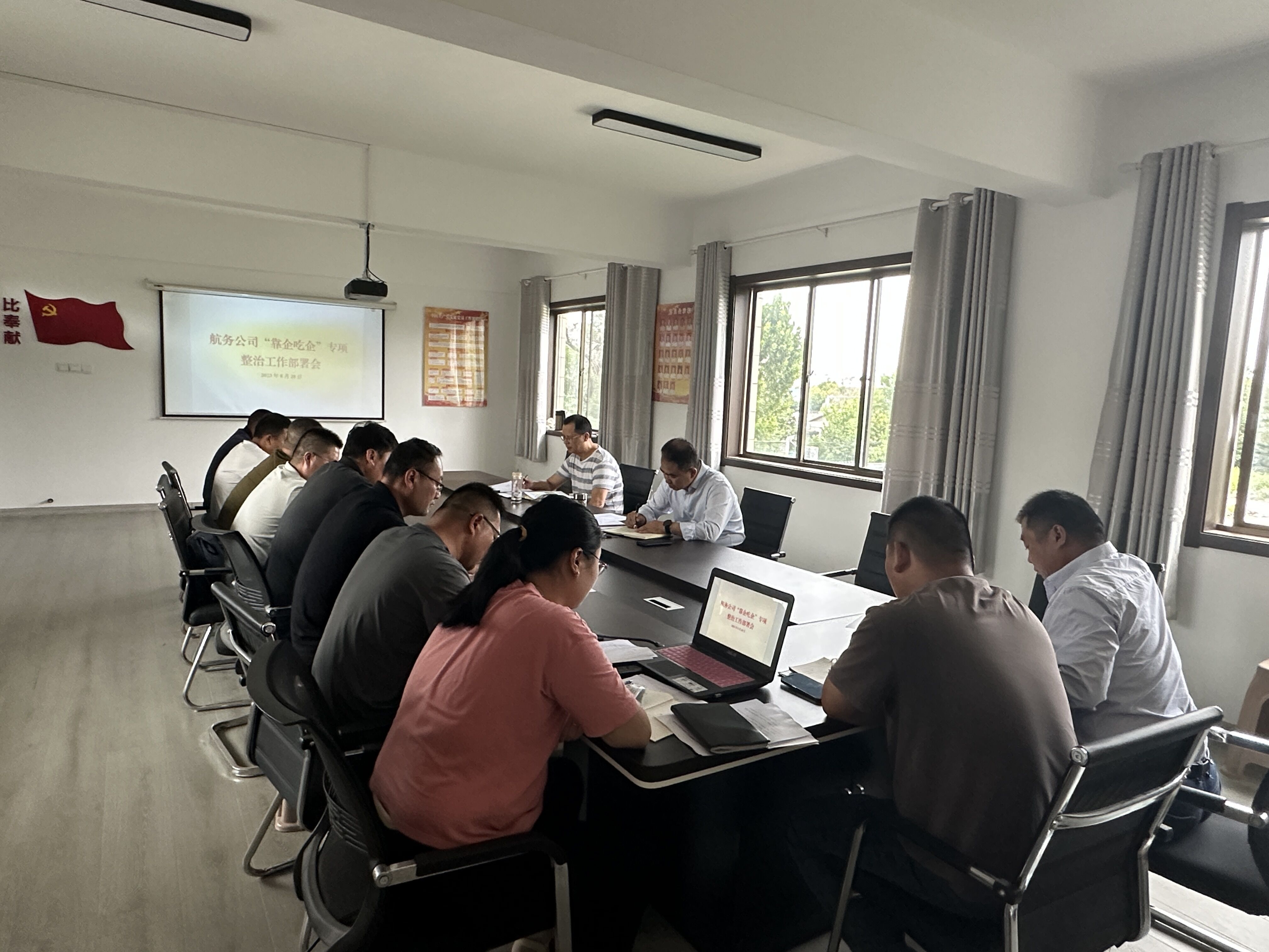 会上,章海涛传达了会议精神和工作安排。他指出,本次专项整治工作是深入贯彻落实全市国有企业警示教育大会精神,是推进全面从严治党、党风廉政建设和反腐败斗争的迫切需要,各部门要深刻认识开展专项整治的重要性和紧迫性,把专项整治作为一项长期性的工作持续推进,要对标对表深入查摆问题,以问题导向规范管理,堵塞漏洞,督促推动落实主体责任、监管责任和系统施治,持续深化“靠企吃企”专项整治行动成效。