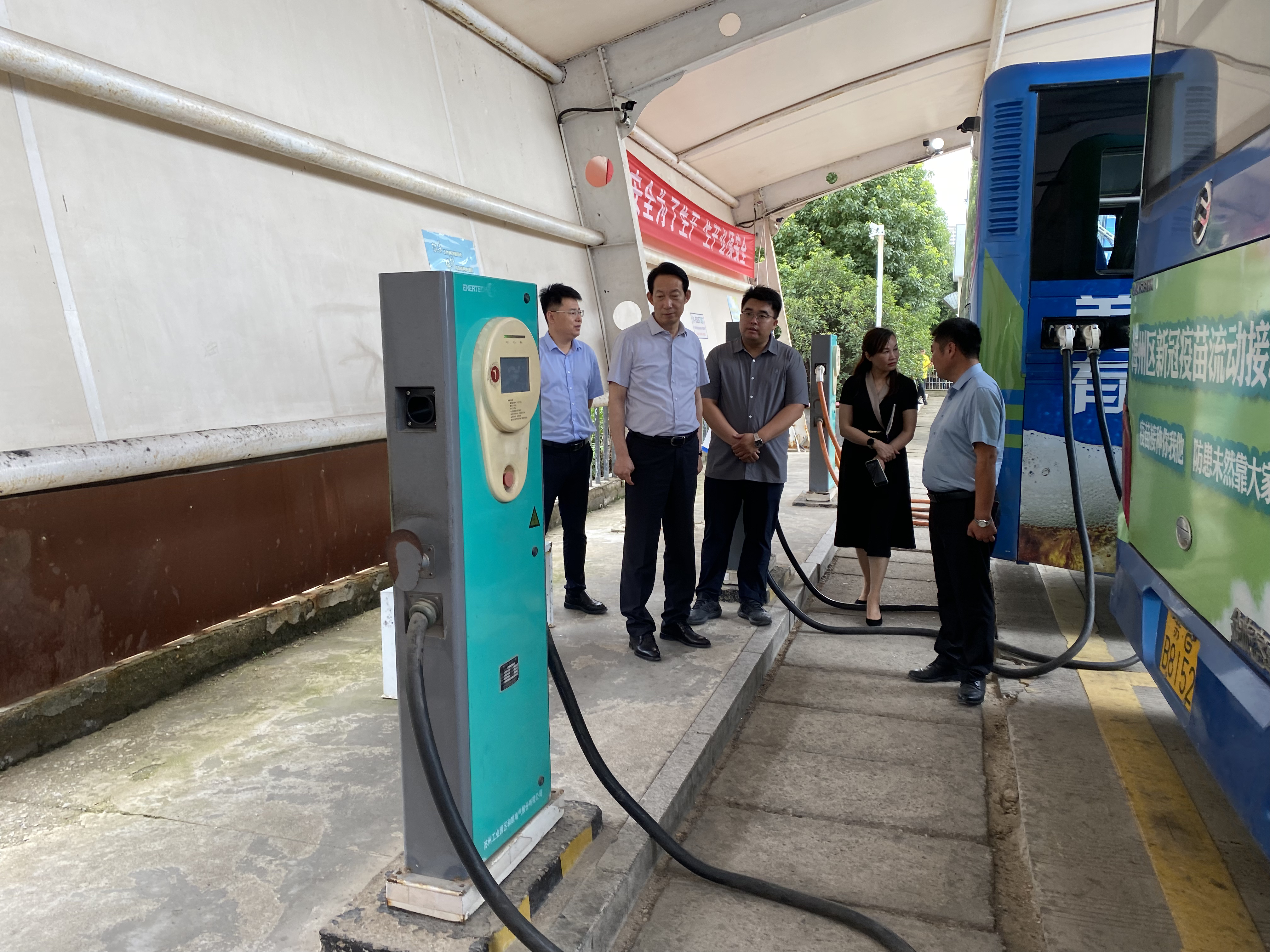 6月26日上午,易游app最新版下载,易游(中国)副总经理王中永,办公室主任于振国、副主任孙婷带队到来到明茂公司西城充电场站督导检查安全生产和消防安全等工作。