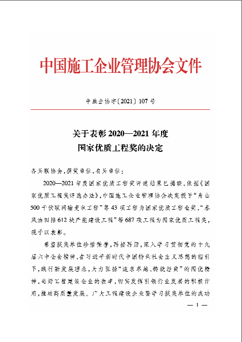 国家优质工程奖是经国务院确认的我国工程建设领域设立最早,规格最高,跨行业、跨专业的国家级质量奖,是工程建设质量方面的最高荣誉奖励。