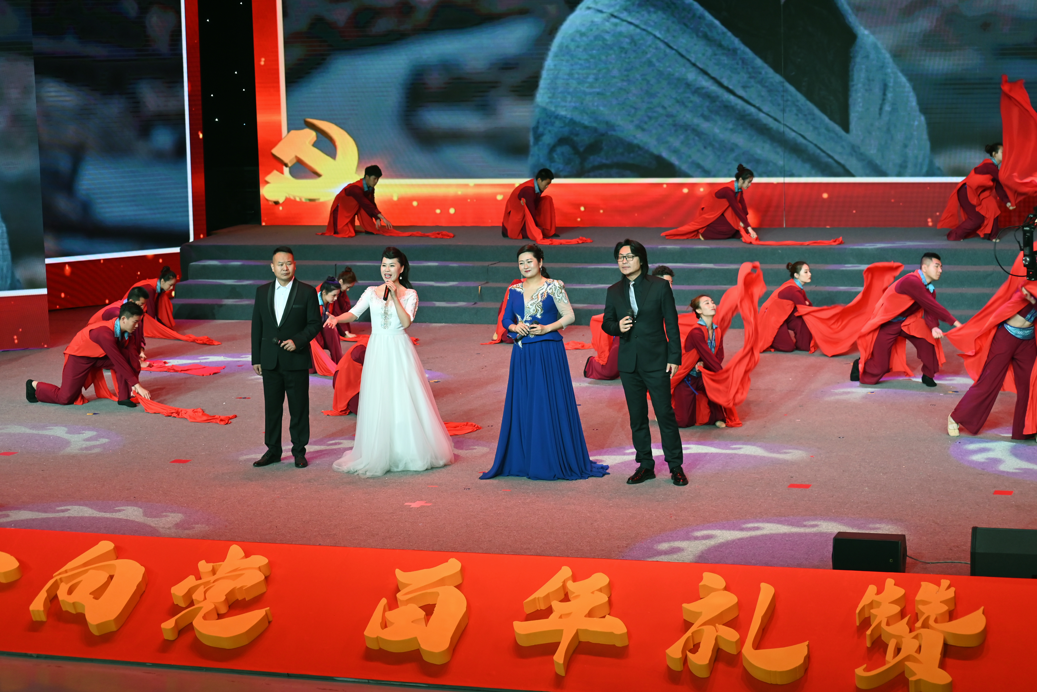 开场歌舞《百年信仰》,气势豪迈、感动心灵、意境深远,拉开了主题晚会的序幕。
