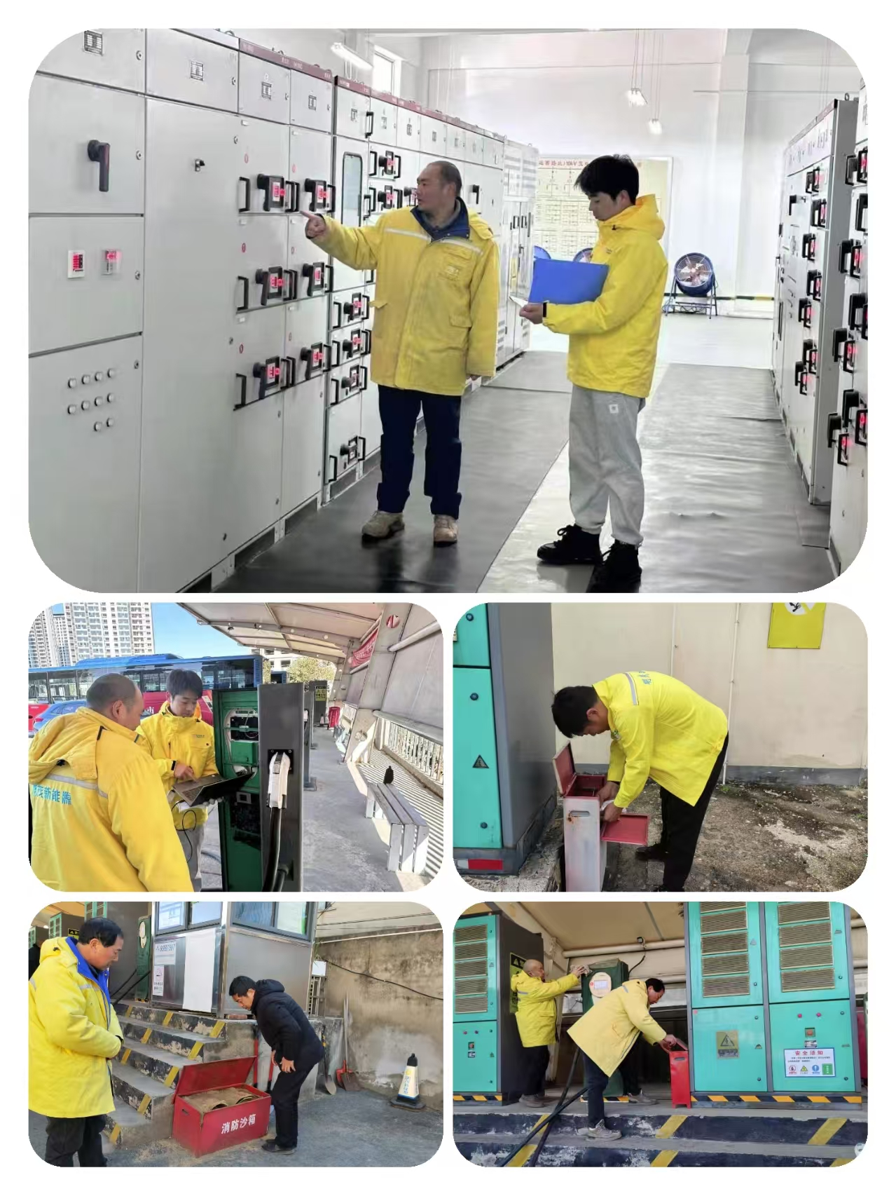 本次排查涵盖20个正在运营充电站的各个区域和设备。在充电设备方面,运维班组人员仔细检查充电桩的外观是否有损坏,内部线路连接是否松动,对充电枪线进行了绝缘检测,对配电房和整流室的变压器、配电柜等设备的运行状态进行了系统性检查,及时更换老化的电气元件,确保每个充电桩无风险隐患。同时,检查人员逐一排查充电站消防设施,重点查看灭火器皮管有无损坏、压力是否在正常范围内,疏通清理充电站电缆沟,防止因春季雨水增多导致积水影响设备运行。随后,对充电设备的防雷设施进行了检查,确保其性能良好,有效应对雷电天气。