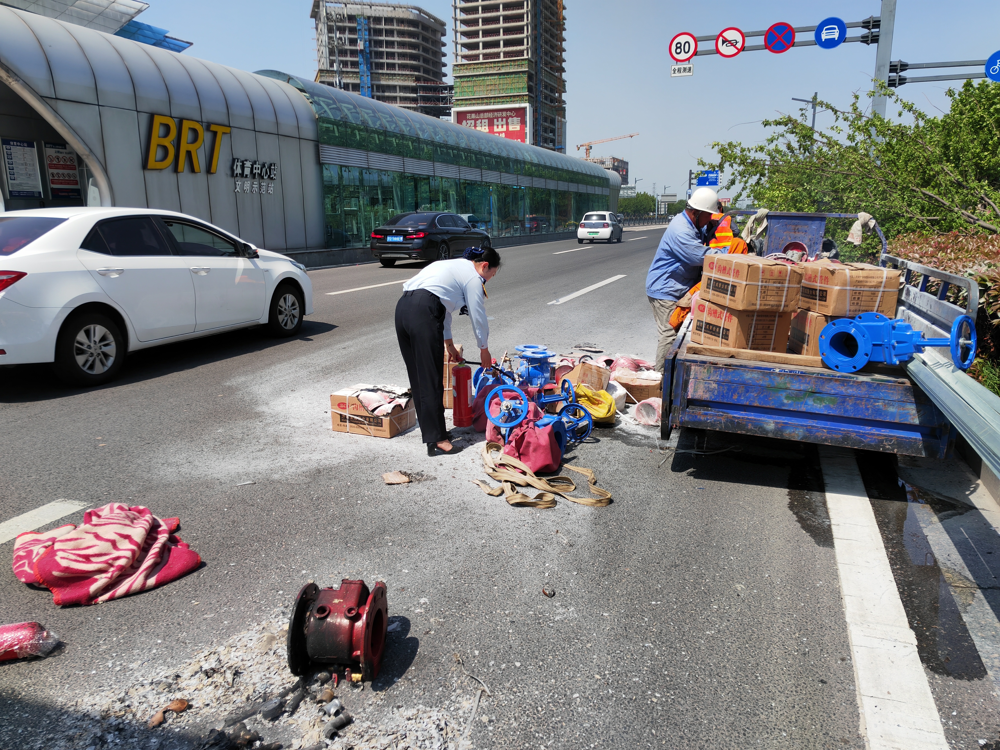 生命至上,救人第一。5月13号下午体育中心上行站社会车道旁边发生火情,一辆货用小三轮车在行驶中突然起火,司机从车上下来慌忙求助,周围私家车虽然很多,可是没有借到一个灭火器。